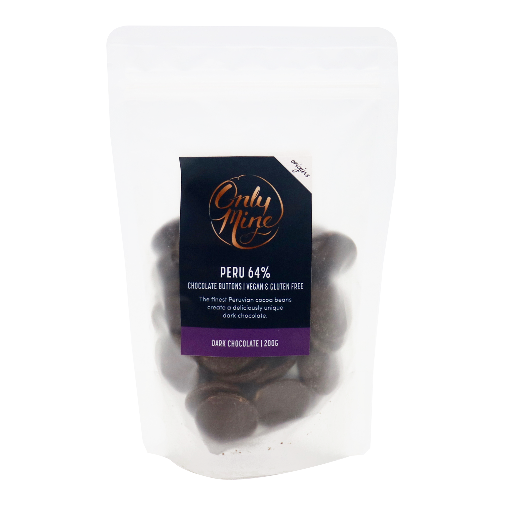 Made from single origin Peruvian cocoa beans, these dark chocolate buttons are fruity with a hint of coffee beans and honey.